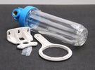 BKG Filtergehäuse DP10 MONO 1/2" -OT-TS 10'' transparente Filtertasse gerades Innengewinde aus Messing mit Wandhalterung und Filterschlüssel Maße 32,5x12,2x10,7cm unbenutzt in OVP Gewicht 950g