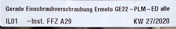 ERMETO 9x Gerade Einschraubverschraubung GE22-PLM-ED unbenutzt Gewicht 920g 9 Stück in der Packung