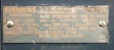 SIEMENS Servomotor 1FT6105-8AB71-4EH1 Mo= 42/50Nm MN= 41Nm nmax= 2250U/min nN= 1500U/min IP65 mit Encoder F02 2048 S/R Brake 31W WellenØ 38mm x 80mm Länge FlanschzentrierØ 180mm gebraucht Gewicht 43,5kg sehr guter Zustand