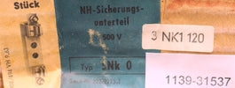 SIEMENS NH-Sicherungsunterteil Type 3NK1120 Anschlußart: Flachanschluß 1-polig DIN 43620 Größe: 0 Nennspannung: 690V Nennstrom: 160A