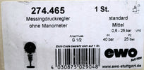 EWO Messing-Druckregler Modell 274.465 G 1/2" Max. Vordruck 40bar Regelbereich 0,5-25bar Nennweite DN 12 ohne Manometer unbenutzt in OVP Gewicht 1,1kg