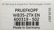 GE KRAUTKRAMER Ultraschall-Prüfkopf WB35-2TX EN Nr. 600319-502 - 53,5 x 29mm 35°