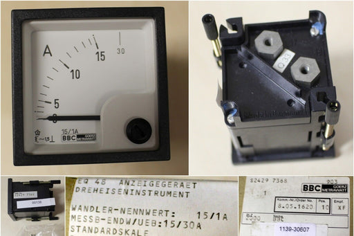 BBCAnzeigegerät DreheiseninstrumentHersteller: BBC GOERZ METRAWATTTyp: Strommesser EQ 48Wandler-Nennwert 15/1AMessbereich 15/30 A-S24297368-IDENT-Nr. ...