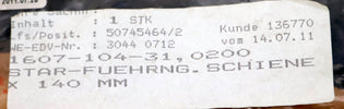 Führungsschiene 1607-104-31 Länge 140mm Baugröße 15mm gebraucht