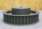 Grauguss Zahnscheibe Pulley mit beidseitiger Bordscheibe 40-XH-200 Profil: XH 40 Zähne für Riemenbreite 50,8mm(200) BordscheibenØ db = 296mm KopfkreisØ dk = 279,55mm Vorbohrung 28mm NabeØ 150mm unbenutzt Gewicht 21,4kg