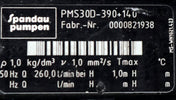 SPANDAU PUMPEN Eintauchpumpe PMS30D-390+140 Eintauchtiefe 390mm 1,0kg/dm³ 1mm²/s 50Hz 260l/min. bei 1,0m Höhe ATB Motor CAF 90S/2H-12 50Hz 230/400V 3,3/5,7A 2850 1/min 1,5kW unbenutzt Gewicht 25kg