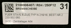 STAHL AUFZÜGE Bremsscheibe ZB N2 Sach-Nr. 2233002080 f. STAHL E-Zug Typ N 216/16