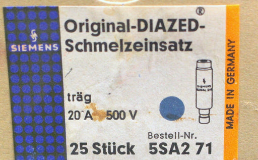 €24,90| /SIEMENS DIAZED-Schmelzeinsatz Sicherungseinsatz 5SA2 71 20A 500V -träg- 25 Stück