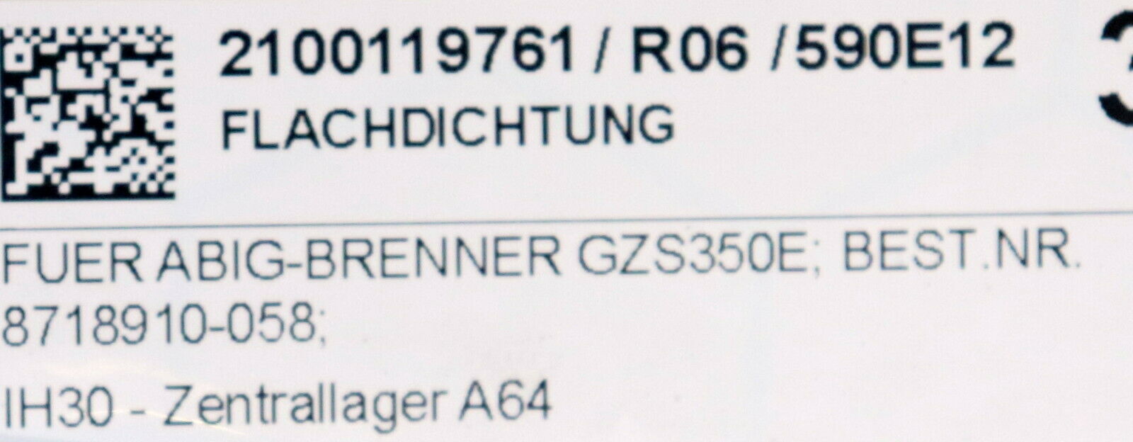 ABIG Brennerflanschdichtung für ABIG-Brenner GE/GZ/GSI300/600 Artikelnr. 8718910-058 Gewicht 350g unbenutzt
