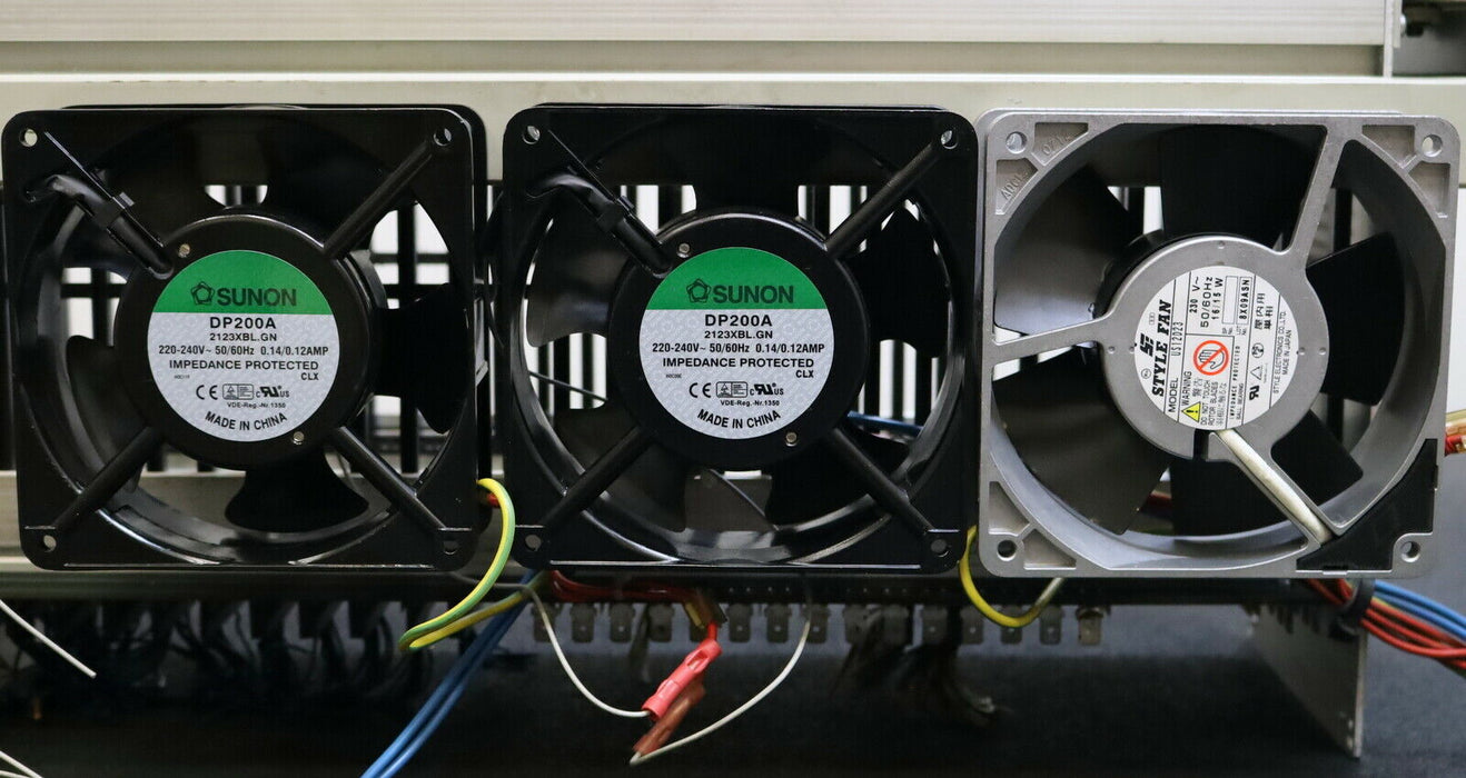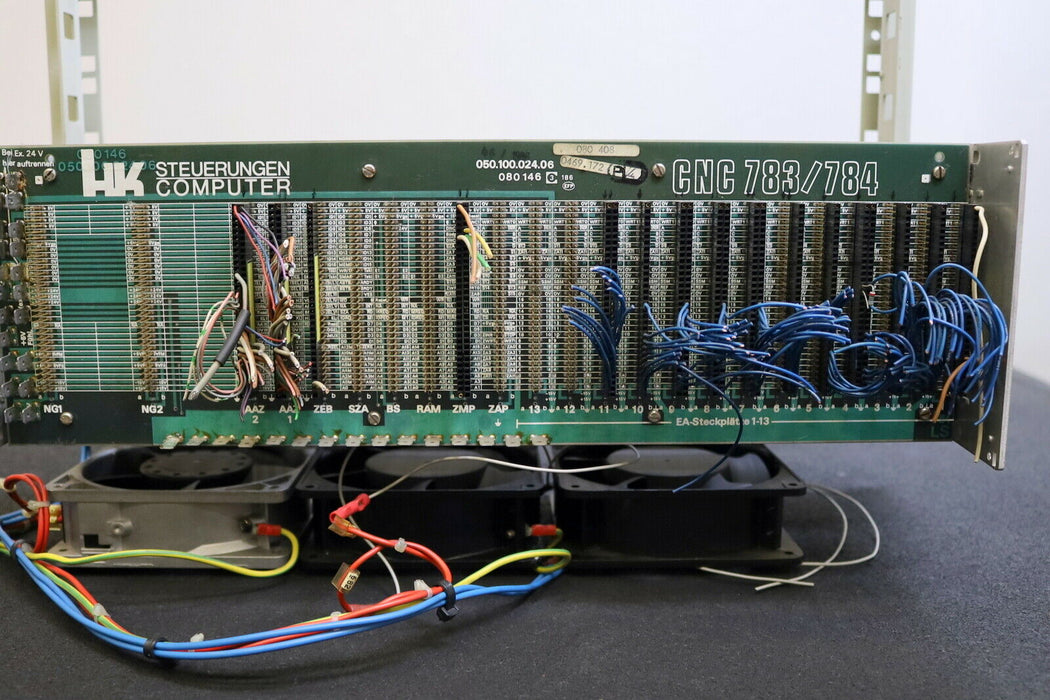 HECKLER & KOCH / BWO Rack für CNC 783/784 0469.172 leeres Steuerungsmodul für 28 Einschübe Platine 050.100.024.06 Art.Nr. 080146 mit Doppel-Lüfter gebraucht Gewicht 5kg