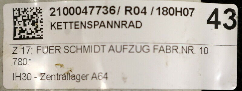 SCHMIDT AUFZUG Kettenspannrad mit Z = 17 für Aufzug Art.Nr. 10 780 unbenutzt