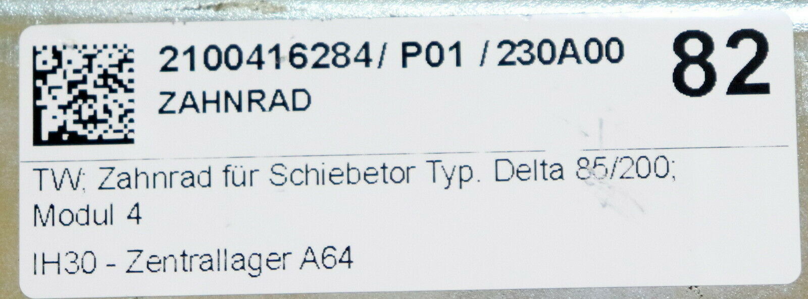 TW Riemenrad für Schiebetor DELTA 85/200 - unbenutzt